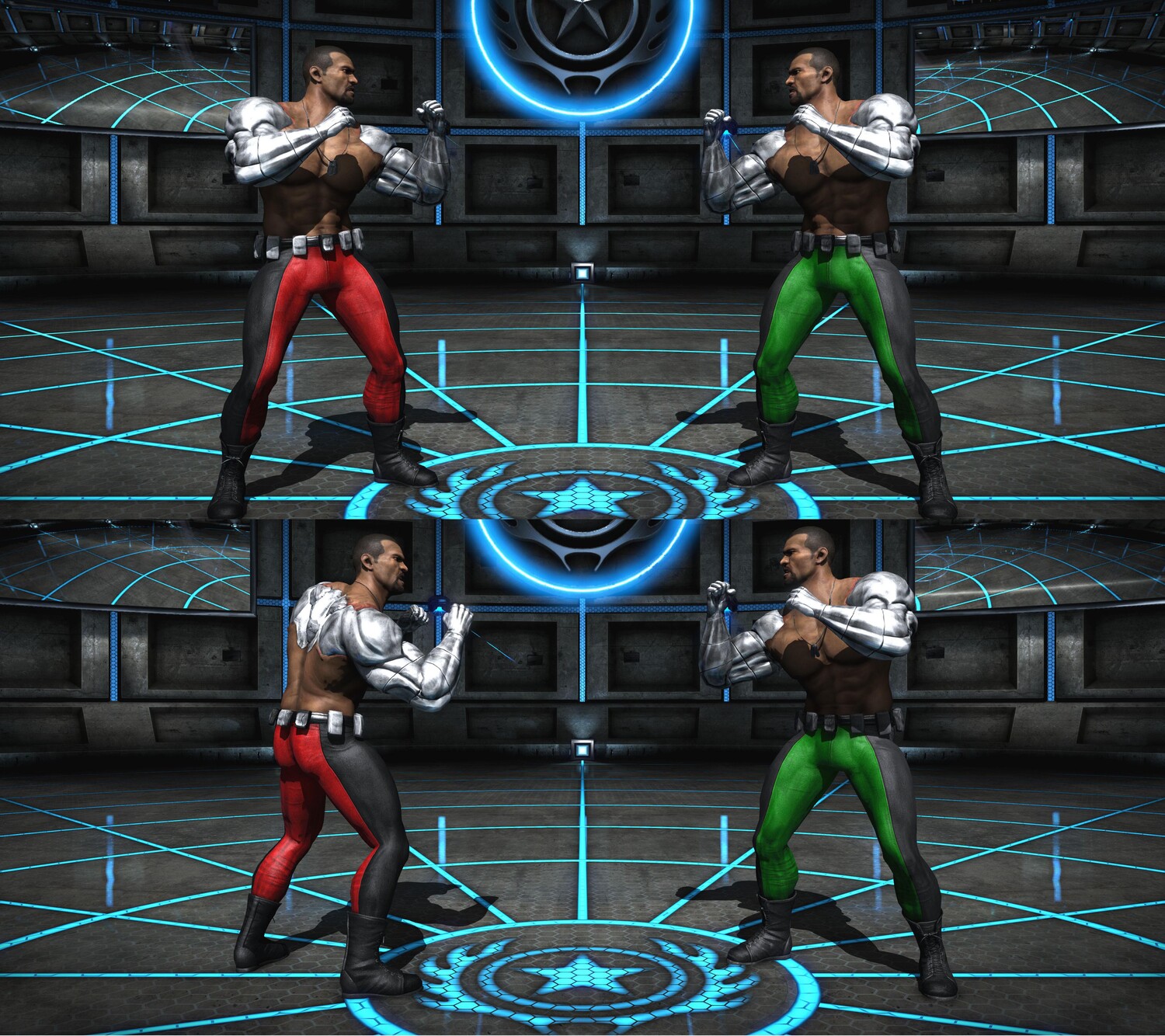Стилистические отсылки к MK4 Минимализм дизайна: отсутствуют высокотехнологичные детали (например, светящиеся схемы или композитные бронепластины), характерные для MKX. Пропорции тела: слегка укороченные конечности и широкая грудная клетка, как у моделей MK4, создают узнаваемый силуэт. Цветовая палитра: строгое сочетание красного, чёрного и серого без дополнительных акцентов. Детали экипировки: ремни, пряжки и тканевые вставки воспроизводят дизайн военного снаряжения из MK4 с повышенной чёткостью.