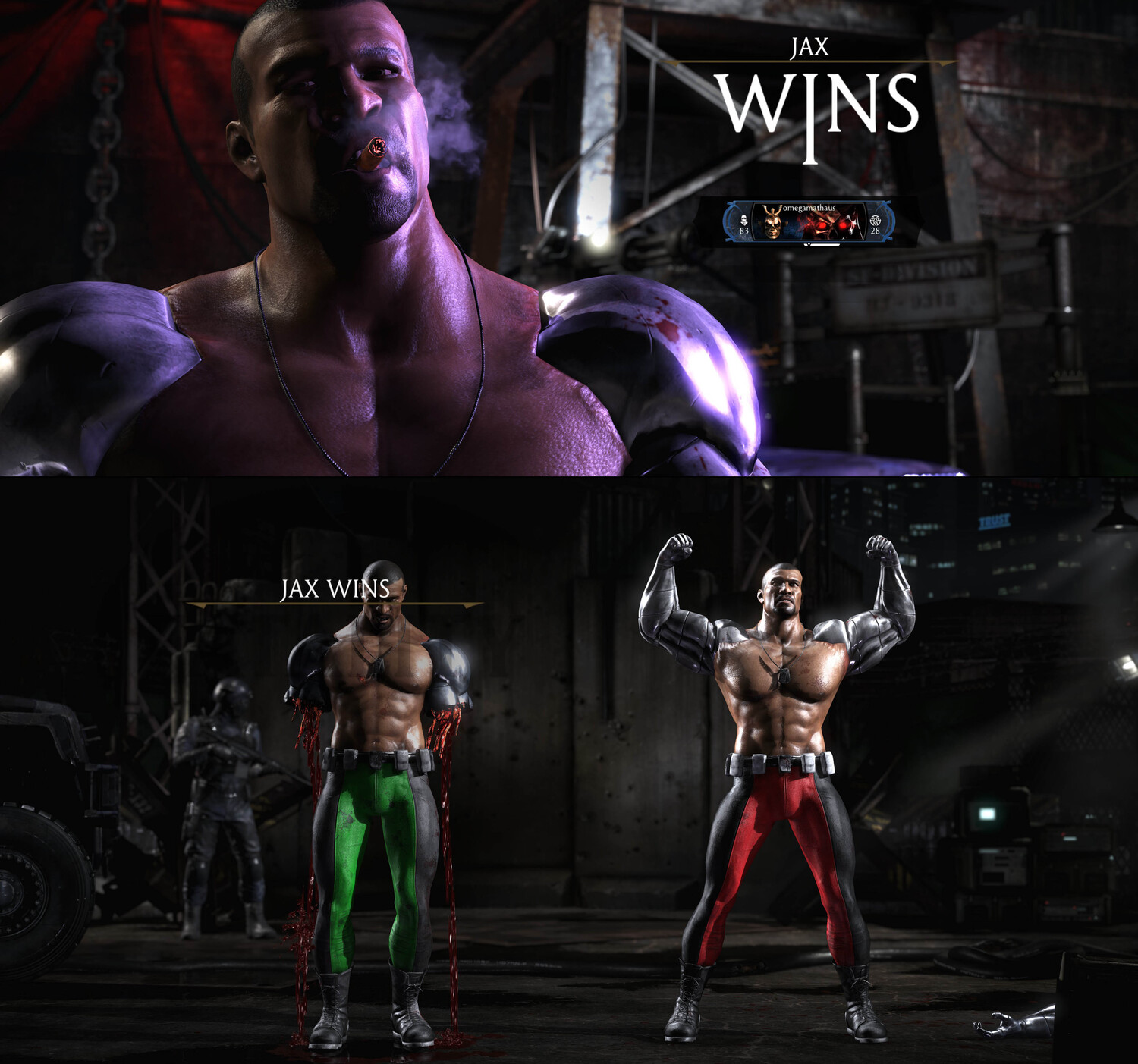 Скин «JAX MK4» переосмысливает образ Джакса в стилистике Mortal Kombat 4 (1997), сохраняя при этом современную детализацию MKX. Это не просто копия оригинала, а улучшенная версия с продуманными визуальными нюансами, возвращающая игрока к эстетике файтинга конца 1990‑х.