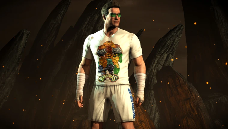 Скин «Johnny Cage — T-Shirt BATTLETOADS» для Mortal Kombat X — это пользовательская модификация, которая изменяет внешний вид персонажа Джонни Кейджа. В этом скине Джонни Кейдж носит футболку с изображением персонажей из игры Battletoads — культового платформера 1987 года, в котором три антропоморфные жабы сражаются с врагами.